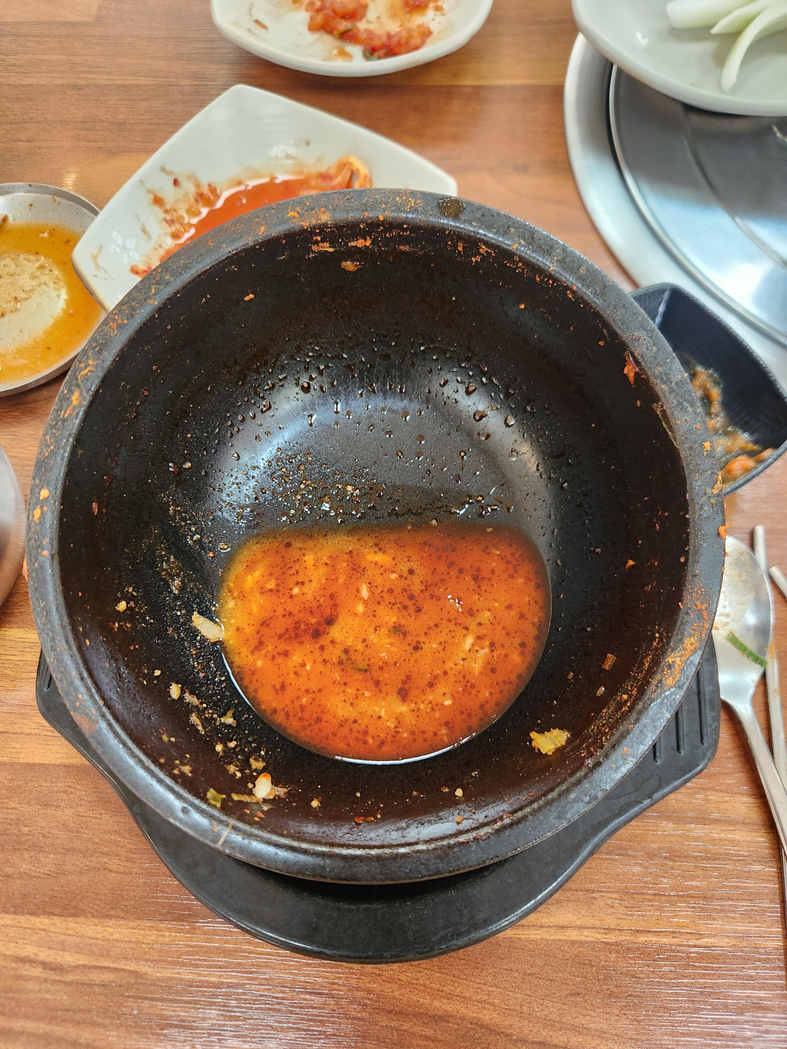오이고추가 인상깊었습니다. 아삭하니 매운맛도 적당해 한개라는게 아쉽다라는 생각을하며 먹고 있었는데 사장님이 어떻게 아시고 아무말도 안했는데 1개를 더 가져다 주셔서 감동받았습니다. 반찬들 중 깍두기, 김치 맛있어서 기분이 좋았습니다.