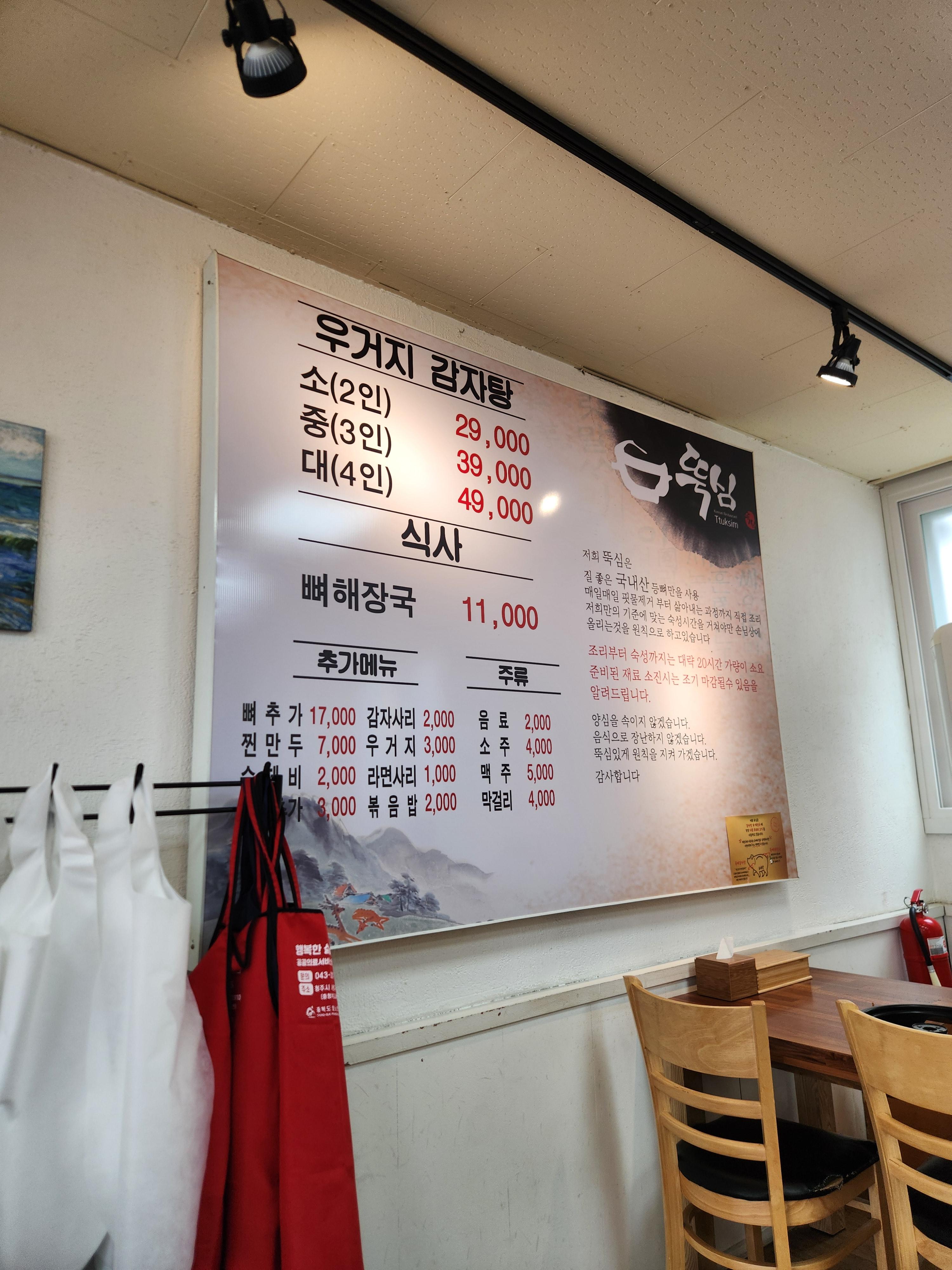 안녕하세요 애꿍이 입니다. 오랜만에 포스팅을 하네요. 하루에 한 개씩 올려야하는데 이걸 꾸준히 하는게 정말 어렵네요! 최근 여러일들이 생겨서 너무 바빴습니다 ㅠㅠ, 오늘 새로운 마음가짐으로 다시 포스팅 시작해보려고 합니다. 소개드릴 가게는 청주에 위치한 감자탕 전문점 뚝심입니다.